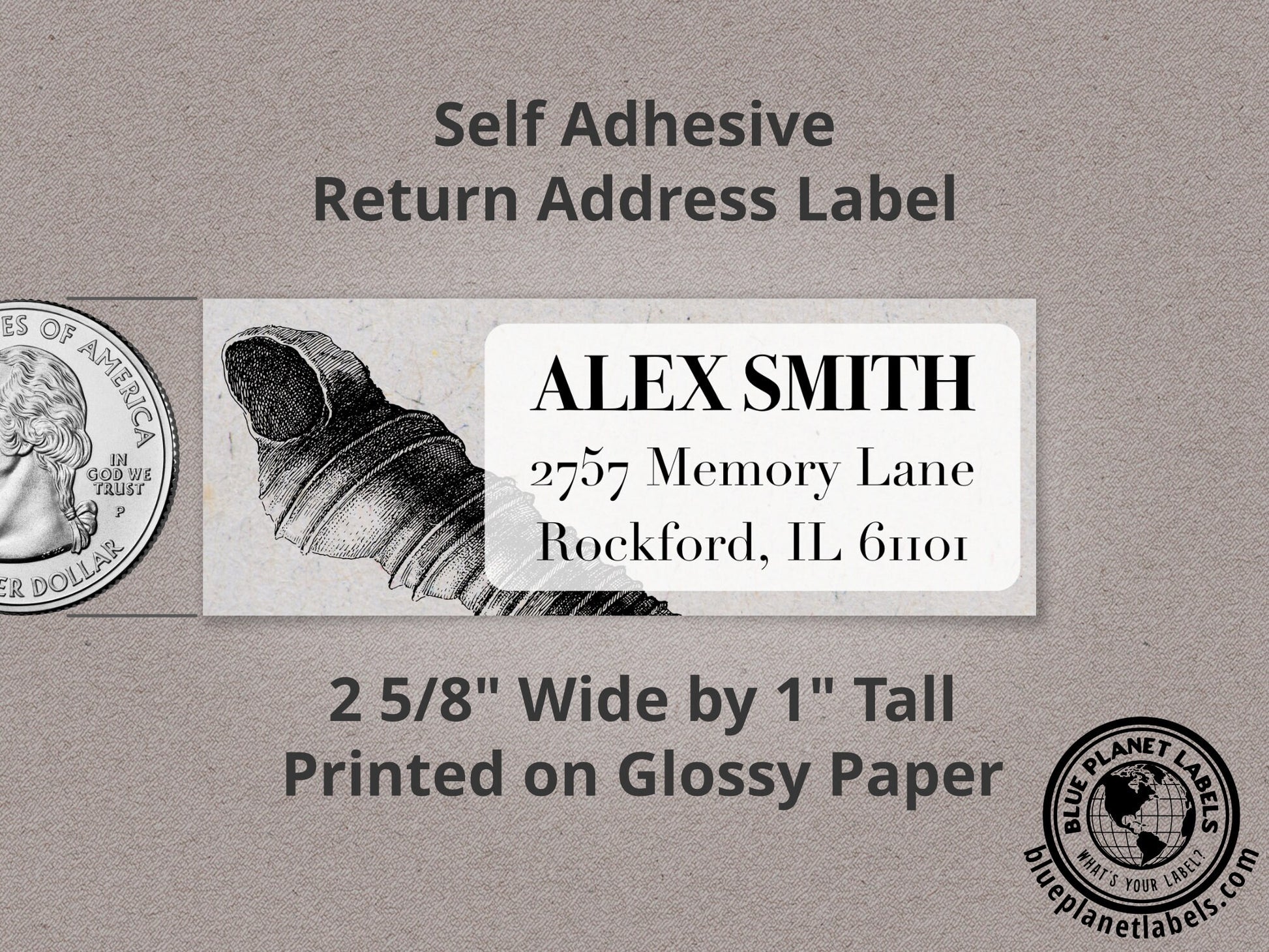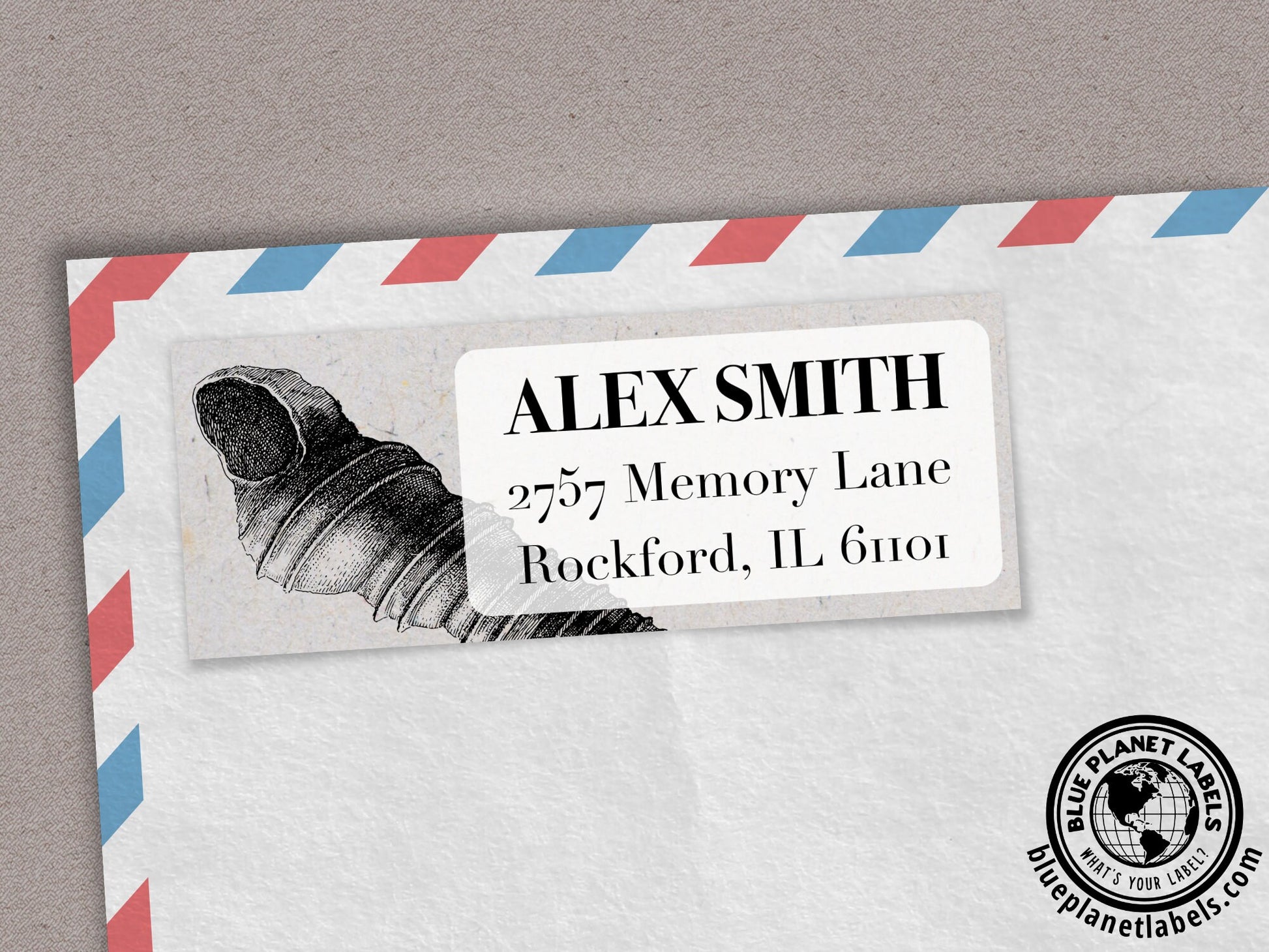 A return address label with a beautiful design of an auger sea shell. Custom art created exclusively for this label. Treat yourself to a set or give one to that person who's impossible to shop for.