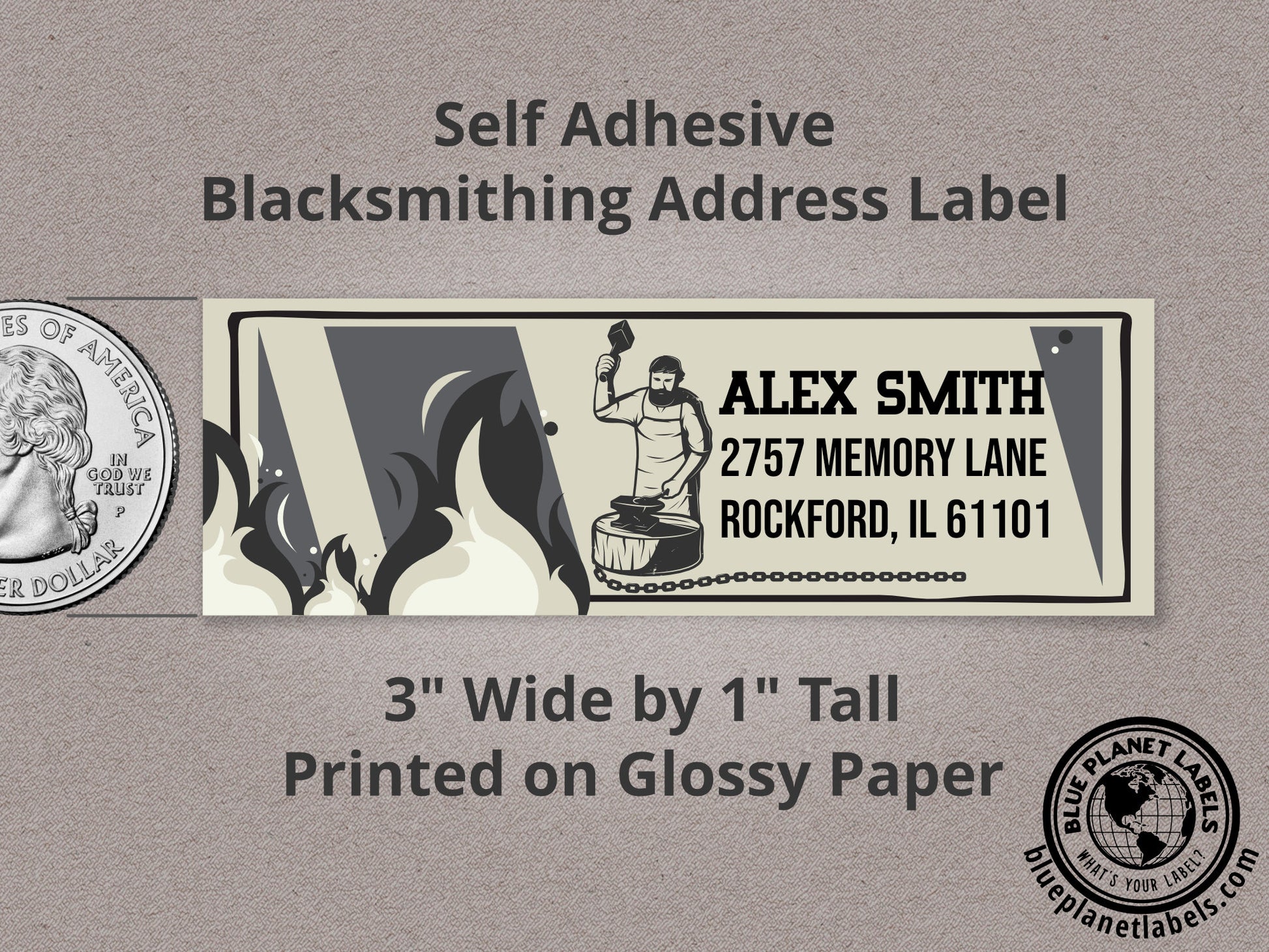 A return address label designed beautifully share your blacksmithing passion with the world. Custom art created exclusively for this label depicting a blacksmith forging an item at the anvil. Treat yourself to a set or give one to that blacksmith or maker in your life who is impossible to shop for.